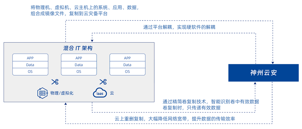 集备份、、、、容灾功能为一体的云灾备平台产品,,将需要灾备保护的操作系统、、、应用、、数据打包成一个云镜像文件,,,,灵活快速的复制到云灾备平台,,,为用户的混合 IT 环境提供统一的灾备保护。。